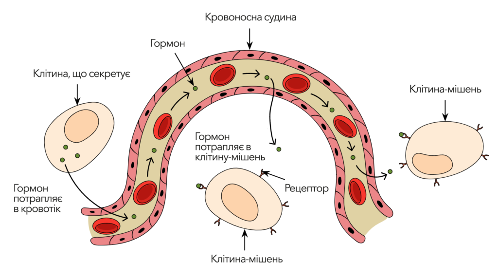 А тепер простими словами. Гормони — це як офісні курʼєри, які розносять повідомлення з важливими інструкціями до кожного окремого відділу. Кожен курʼєр несе конкретне завдання для певного адресата: одні доставляють “повідомлення” м’язам, що потрібно рости, інші — шлунку, що час перетравлювати їжу. Тільки-но лист потрапляє до потрібного місця, адресат — орган чи клітина — виконує інструкції, забезпечуючи таким чином злагоджену роботу організму.