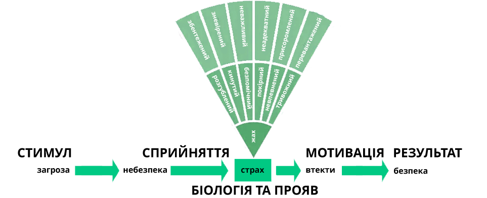 Страх — це емоція, яка виникає у відповідь на конкретну реальну або уявну загрозу і має чітко визначену причину.