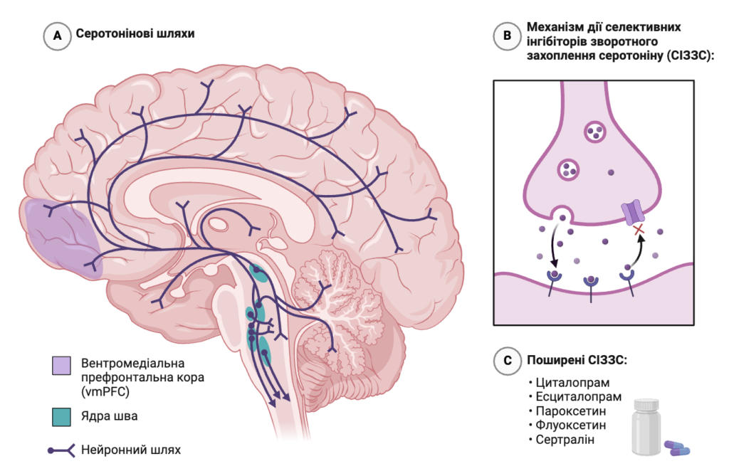 Саме через вплив на настрій серотонін є основною мішенню для ліків, які лікують депресію, тривожність та інші розлади. Наприклад, антидепресанти класу СІЗЗС працюють, підвищуючи його рівень у мозку.